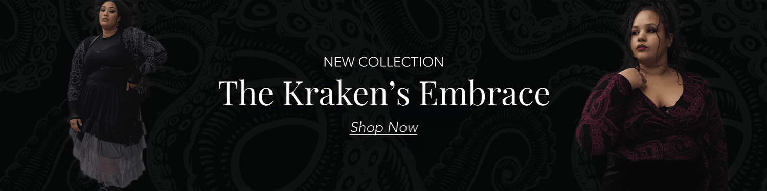 The Kraken's Embrace collection brings together some of our most striking alternative fashion pieces yet. Designed in-house and ethically made, this is gothic clothing built for real life — wearable, inclusive and unlike anything else.