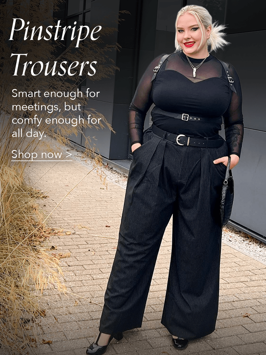 We wanted comfortable office clothes that actually fit and move with you. We designed smart wide-leg pinstripes, tailored skirts, and breathable office tops, all made from genuinely stretchy, soft fabrics.