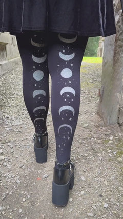 Hold nattehimlen tæt på dig med vores Moon Phases 80 Denier-strømpebukser. Med et iøjnefaldende månemønster ned ad bagsiden af begge ben er disse strømpebukser fremstillet af vores karakteristiske, ultraelastiske og åndbare garn, der sidder perfekt og føles fantastisk. Sig farvel til strømpebukser, der ruller sig op i taljen, og kiler, der hænger; disse er designet til virkelige kroppe.