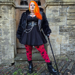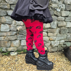 80 denier uigennemsigtige strømpebukser - Danu Skull Flower - Blodrød