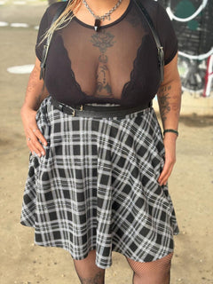 Den elegante, tidløse og nemme at tage på Cairn Plaid Flare Skirt i normal længde er klassisk monokrom med et blødt, svingende twist.