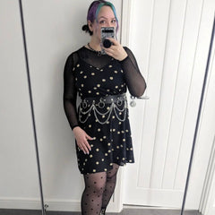 Luce los lunares más bonitos en tus piernas con nuestros leotardos negros de 40 deniers con diseño de lunares transparentes. Estos leotardos son muy resistentes y están hechos para durar. Son fáciles de poner y muy elásticas, por lo que se ajustan perfectamente. Son lo suficientemente cómodas como para llevarlas todo el día y son un toque final épico para tu conjunto.