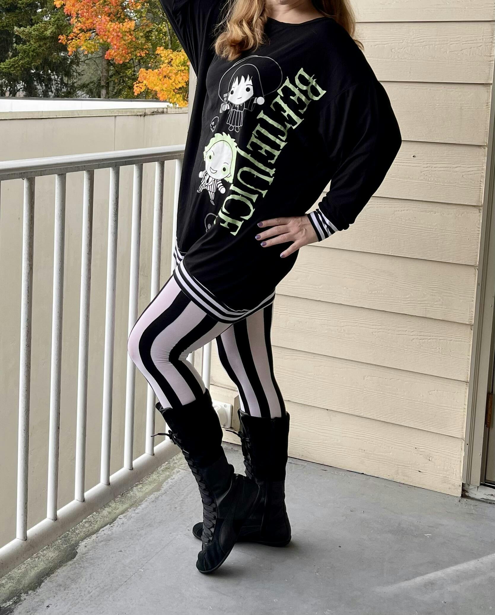 ¿Rayas verticales? Sí, por favor. Estas mallas Betelgeuse son ideales para la temporada espeluznante y más allá. Diseñadas para adaptarse a todos los cuerpos, son muy elásticas y cómodas, y su diseño está bien tejido para que queden bien en cualquier situación. Hechas para durar desgaste tras desgaste, realmente necesitas estas mallas.