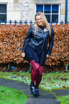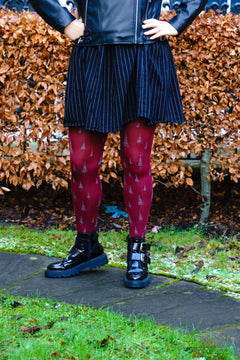 Te presentamos Enchancted Forest, unas cómodas medias de 80 deniers con una base de color burdeos intenso y motivos de árboles plateados brillantes repartidos por las piernas. Crean una escena mágica en el bosque que refleja la luz de forma preciosa, añadiendo un sutil toque de brillo a cualquier conjunto. Suaves, cálidas y maravillosamente cómodas, te mantienen abrigada a la vez que añaden un toque divertido y caprichoso a tu estilo.