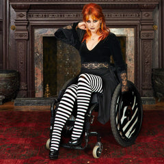 Da rienda suelta a la bruja que llevas dentro con estos leotardos a rayas blancas y negras. Ideales para llevarlas todo el año, estas mallas te mantienen abrigada cuando hace frío y fresca cuando hace calor gracias a su hilo aireado que es transpirable y absorbe la humedad. Lo suficientemente cómodas como para llevarlas todo el día.