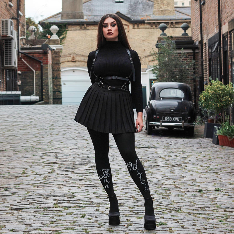 ¿Eres una bruja buena o mala? Deja que tus mallas hablen por ti. Esta atrevida declaración está tejida en la parte trasera de las pantorrillas de nuestros opacos supersuaves de 80 deniers, para que puedas decirle al mundo exactamente con quién está tratando.