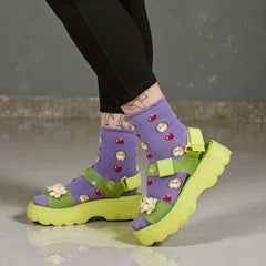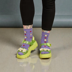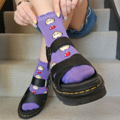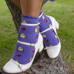 Te vas a enamorar perdidamente. Los calcetines de bambú «Hedge Hugs» son una auténtica monada: tienen unos erizos diminutos acurrucados junto a unas manzanas rojas sobre un precioso fondo morado oscuro.