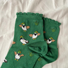 Marcha al ritmo de tu propio tambor con los calcetines de bambú Waddle Squad. Con un adorable desfile de patos sobre un fondo verde oscuro intenso, aportan un toque divertido y original a cada paso.