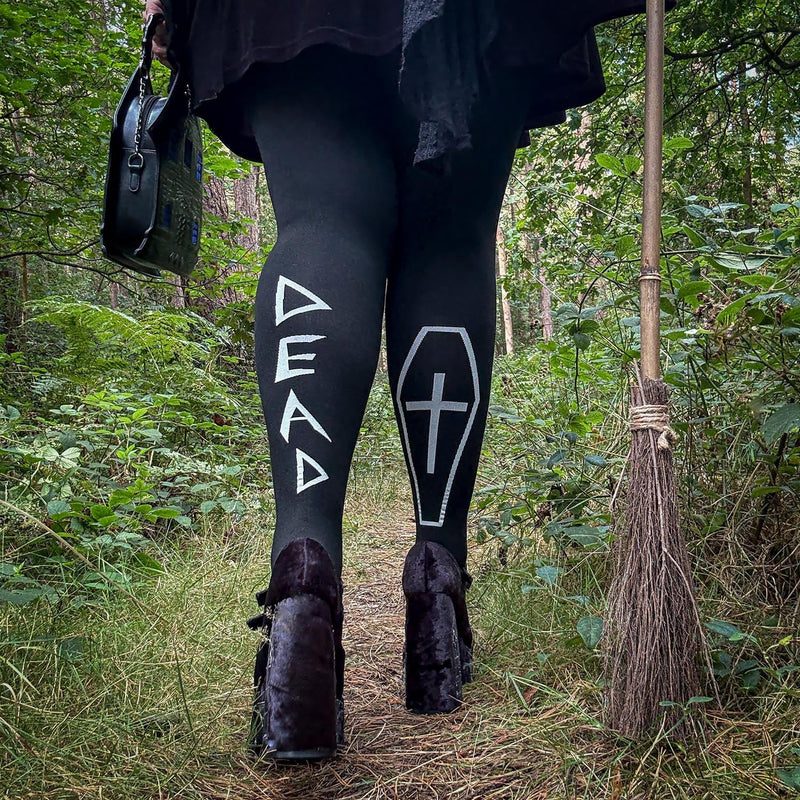 Para esos días en los que tu estado de ánimo va a juego con tu atuendo. Las mallas Dead Inside dejan que el mundo sepa exactamente cómo te sientes, con un motivo de ataúd y la palabra "Dead" impresa en la parte trasera de las pantorrillas. Es una declaración sencilla y atrevida para cuando te sientes espeluznante por fuera y, bueno, muerta por dentro.