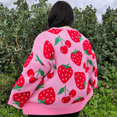 Te presentamos Fruity, un jersey diseñado desde cero para ser supercómodo, muy suave y totalmente libre en los lugares que lo necesitas. Con cuello redondo, dos tallas relajadas y dobladillo de canalé para que los culitos y las barriguitas no se resientan. Es acogedora y de un magnífico colorido, con cerezas y bayas tejidas por todas partes.