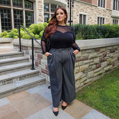 Con un sutil escote corazón, la parte superior es de malla transparente y la inferior es de jersey de algodón opaco. El cuello es más alto, con una abertura en forma de ojo de cerradura asegurada con dos botones domo, es muy elástico y no aprieta en el cuello. Las mangas largas se ajustan incluso a los brazos más gruesos y son lo suficientemente largas como para llegar hasta la muñeca. Es súper suave en toda su superficie, no irrita la piel y, por si fuera poco, tiene un gran potencial. Florence es ideal para la oficina, una salida nocturna o para esos looks góticos corporativos.