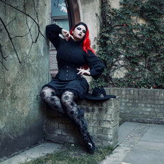 Oh, Lucrezia, en encaje reinas. Medias negras estampadas, en un denier mixto. Los camafeos de flores se extienden por toda la pierna, entrelazados con líneas y remolinos. Elasticidad y confort en cada hebra, este elegante estampado es tan ponible y supremamente cómodo. Estas mallas son el himno de una heroína que dominó el mundo con gracia e intriga.