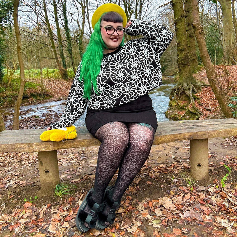 Son un poco fósiles. Los leotardos Ammonite Fossil están cubiertos de un impresionante estampado de amonitas de punto, el mismo diseño que aparece en nuestro jersey y nuestro vestido. Dibujado a mano por el equipo Snag , este intrincado estampado negro sobre negro es perfecto para los amantes de un look sutil pero épico.