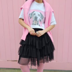 Hay conjuntos que susurran. Este, en cambio, no se anda con rodeos. La falda de malla negra es sinónimo de confianza discreta y dramatismo natural. Sus tres capas de malla suave se mueven contigo, creando una silueta vaporosa que transmite fuerza sin parecer forzada. Es atemporal, versátil y combina con todo, sin dejar de destacar.