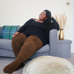 Dale un capricho a tus muslos con nuestros lujosos calcetines de punto hasta el muslo en color marrón chocolate. Cómodos, acogedores e increíblemente suaves, estos calcetines te mantendrán calentita y a la última. Llévalos al aire libre sobre mallas o leggings para que no se te caigan, o acurrúcate en casa para disfrutar de los calcetines hasta los muslos más cómodos.