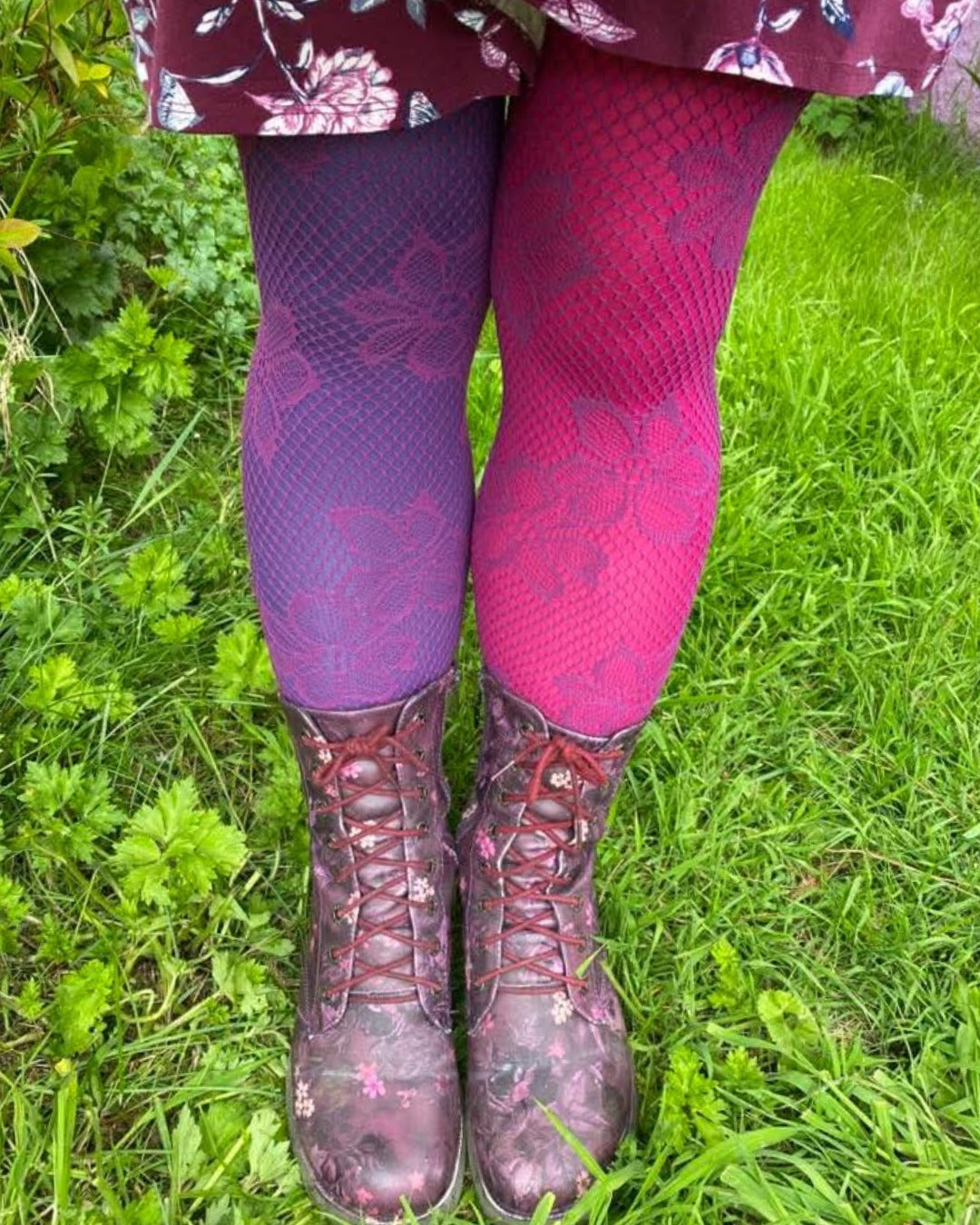 Passons maintenant à la partie la plus amusante. Ajoutez une paire de résilles ou de collants mixtes à motifs par-dessus pour ajouter un peu de texture. Un noir ou un blanc classique sur une base colorée est toujours un atout, mais un filet coloré dans une couleur contrastante est également très joli !