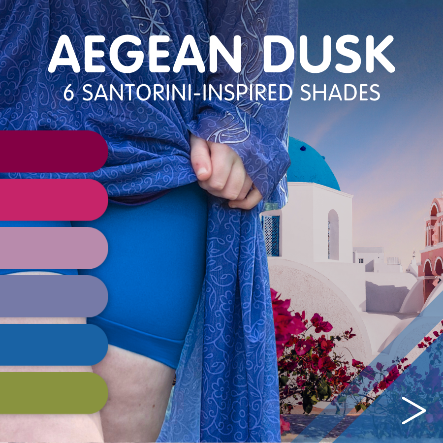 Les meilleurs moments de vacances, c'est quand on ne se soucie pas de ce qu'on porte. J'ai choisi ces teintes pour refléter le rythme de vos vacances. Les couleurs vives de « Vivid Shore » s'accordent à l'énergie débordante du soleil de midi. Les nuances de « Aegean Dusk » sont faites pour ces soirées calmes et brumeuses où la chaleur finit par s'atténuer.