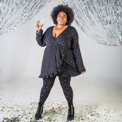 Dites bonjour au motif pailleté le plus mignon qui soit. Vous êtes un cadeau, alors pourquoi ne pas le canaliser dans ces superbes collants noirs avec un motif de nœuds dorés imprimés en lurex.