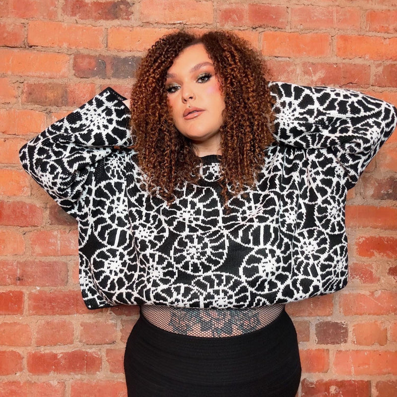 Il est maintenant beaucoup plus facile d'incarner le paléontologue qui sommeille en vous. Restez bien au chaud et ayez l'air d'un fossile fabuleux avec le pull croisé Ammonite ! La base noire est ornée d'un motif d'ammonite blanc tricoté sur tout le pull.