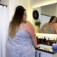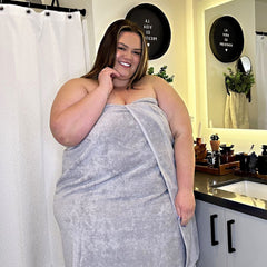 Notre serviette HUGE la plus vendue est de retour ! Vous avez demandé des couleurs, les voici donc. En argent classique, ces serviettes sont la chose la plus agréable que vous puissiez mettre sur votre corps. Conçue pour convenir à tous, quelle que soit leur taille, cette serviette mesure 220 cm de long et 100 cm de large. Super douce, moelleuse et délicieusement douillette, elle est très absorbante et idéale pour la douche, la plage ou le spa. Dites adieu à toutes les autres serviettes - nous le pensons vraiment.