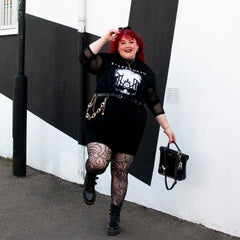 Embrassez l'ombre avec nos résilles Thighs The Limit Timewarp en noir, où le confort rencontre l'allure gothique. Il ne s'agit pas de n'importe quel filet de pêche, mais d'une déclaration, d'un murmure de rébellion contre la banalité. Conçues avec notre célèbre coupe anti-chafe, ces merveilles à motifs bannissent l'inconfort et embrassent vos courbes d'une étreinte sombre.