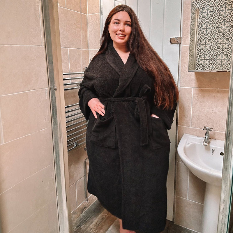 Snag , qui s'est vendu comme des petits pains, est de retour en noir. Conçu pour s'adapter à toutes les morphologies, quelle que soit la taille, sans compromettre la fonctionnalité ou le confort. Nos peignoirs très demandés sont là pour transformer votre expérience au spa et au-delà. Pas de vide au niveau du bas, pas besoin de vous contorsionner pour l'enfiler, juste un peignoir qui vous va vraiment, qui vous va à ravir tout en étant luxueusement doux et incroyablement confortable.