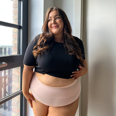 Dites bonjour à la culotte parfaite dans le rose parfait ! Incroyablement confortable, cette culotte à taille haute ne roulera pas, ne s'affaissera pas et ne s'enfoncera pas, et elle épousera votre ventre et vos fesses en toute sécurité tout au long de la journée. Fabriquée en coton biologique doux et épais mélangé à de l'élasthanne, elle est une excellente combinaison d'extensibilité et de fermeté, qui maintient votre ventre sans vous gêner.
