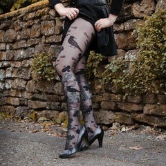 Les sorcières se rassemblent ! Soyez la mieux habillée de votre assemblée avec nos collants inspirés des livres de sorts. Nous avons mis au point une toute nouvelle technique pour fabriquer ces collants. Elle part d'une base en maille et nous permet de tricoter des motifs détaillés inspirés du flocage sur le dessus. Pensez-y comme à des résilles très robustes avec de superbes motifs sur le dessus ! Parfait pour jeter des sorts.