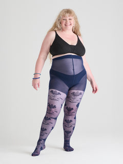 Les sorcières se rassemblent ! Soyez la mieux habillée de votre assemblée avec nos collants inspirés des livres de sorts. Nous avons mis au point une toute nouvelle technique pour fabriquer ces collants. Elle part d'une base en maille et nous permet de tricoter des motifs détaillés inspirés du flocage sur le dessus. Pensez-y comme à des résilles très robustes avec de superbes motifs sur le dessus ! Parfait pour jeter des sorts.