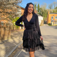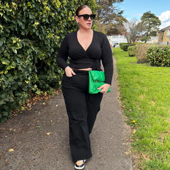 Certains vêtements sont des incontournables. Celui-ci en fait partie. Le haut croisé noir est celui vers lequel on se tourne quand on veut avoir l'air soigné sans avoir à y penser. Épuré, flatteur, on ne s'en lasse jamais. Il se marie avec tout et est toujours parfait.