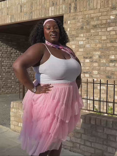 Comme les pétales d'une fleur magique, notre mini-jupe en maille rose Flushing est un rêve de couches flottantes et éthérées.