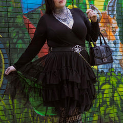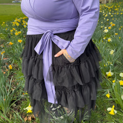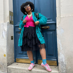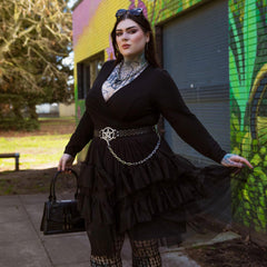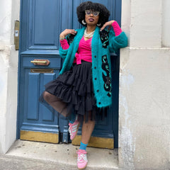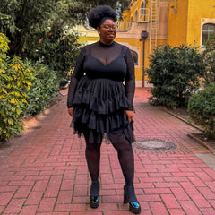 Certaines tenues sont discrètes. Celle-ci, elle, n'en fait pas tout un plat. La jupe en maille noire incarne à la fois une assurance tranquille et un effet spectaculaire tout en naturel. Ses trois volants en maille souple suivent chacun de vos mouvements, créant une silhouette aérienne qui dégage une impression de puissance sans en faire trop. Intemporelle et polyvalente, elle s'accorde avec tout tout en se démarquant.