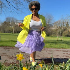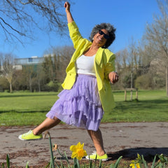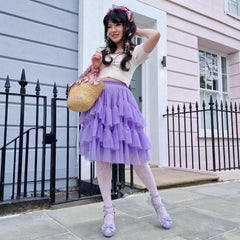 Certains jours, on a envie de fantaisie. D'autres, on préfère la douceur. Cette jupe offre les deux. La jupe en maille lavande vous procure cette sensation de légèreté et de fluidité qui rend tout un peu plus magique. Ses trois volants en maille douce suivent chacun de vos mouvements, captent la lumière et créent une silhouette aérienne et rêveuse qui transforme les moments du quotidien en quelque chose d'exceptionnel.