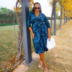 Laissez-vous emporter par la magie et découvrez la robe portefeuille Nebula. Elle est confectionnée dans notre luxueux jersey de coton et ornée de l'imprimé exclusif Nebula Stars, composé de tourbillons bleu foncé et bleu sarcelle parsemés d'étoiles dorées.