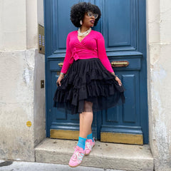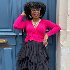 C'est le haut qui vient parachever votre look. Celui que vous choisissez lorsque vous voulez avoir l'air élégante en un clin d'œil, sans vous prendre la tête. Sa coupe croisée dessine une silhouette flatteuse et sculptée, tandis que la teinte « Pomegranate » apporte une touche audacieuse et pleine d'assurance à toutes vos tenues. Il se marie à merveille avec la jupe assortie, avec un jean, ou avec tout ce que la journée vous réserve.