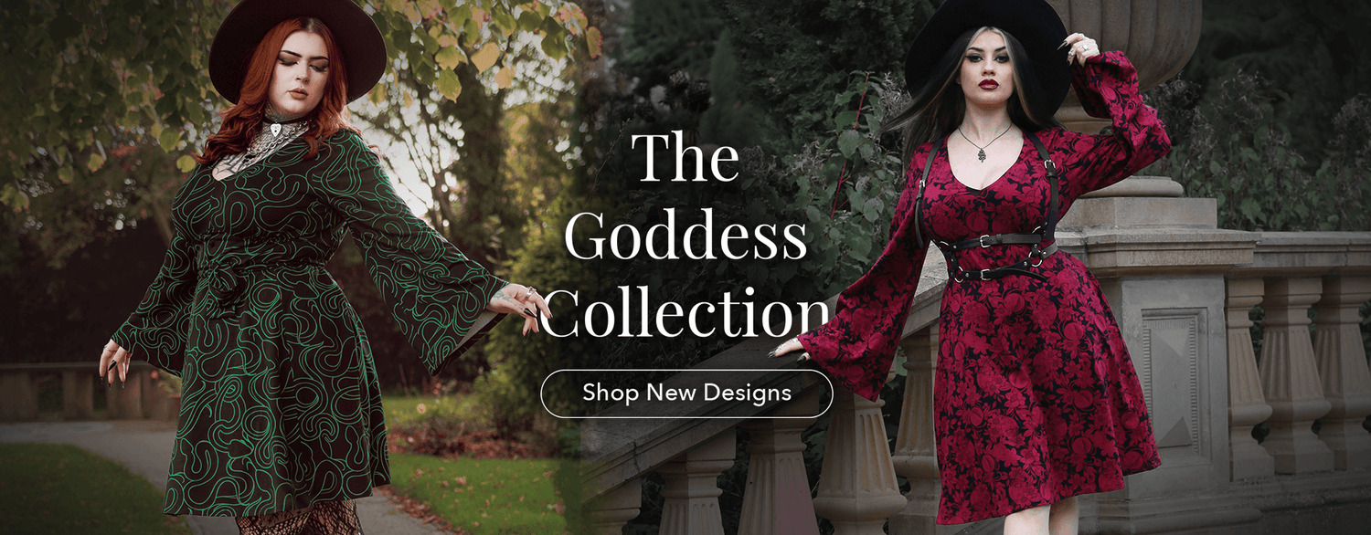 Questa collezione celebra la vostra forza e la vostra resilienza. Trovate la dea che è in voi con la stampa mistica a serpente del Corra Bell Sleeve Mini Dress in Foliage & Black. Oppure abbracciate uno stile romantico e dark con il mini abito a maniche a campana Danu in rosso sangue, caratterizzato da uno splendido motivo a teschi e fiori. Entrambi gli abiti hanno una forma fluttuante, maniche a campana e tasche profonde e funzionali.