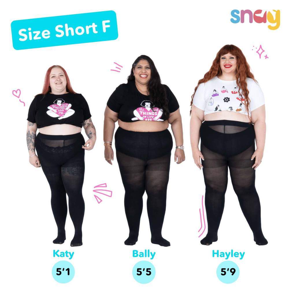 Scegliere la taglia perfetta dei collant Snag è davvero facile. Basta trovare la propria taglia nella tabella e tracciarla per trovare la propria altezza. La vostra taglia Snag sarà una lettera nella tabella. Esistono due tipi diversi a seconda che abbiate o meno un sedere e una pancia prominenti. I nostri collant sono fedeli alla taglia, ma se siete tra le due taglie, aumentate la taglia.