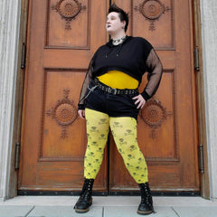 Questi collant gialli brillanti hanno un epico motivo a teschio lavorato a maglia, ideale per aggiungere un tocco di colore a qualsiasi guardaroba gotico. Con 12 pollici di elasticità multidimensionale, questi modelli non si deformano su nessuna taglia, sono super comodi e si adattano davvero bene.