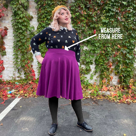 Onze rokken zijn allemaal ontworpen om hoog getailleerd te zijn, dus houd daar rekening mee bij het opnemen van je maten!