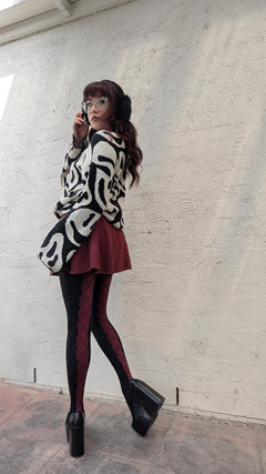 Magie uit de oudheid, gemaakt voor moderne lichamen. De Entwined panty heeft een prachtig, ingewikkeld Keltisch knoopontwerp dat langs de achterkant van de benen loopt in een gedurfd, prachtig rood. Het is een echt statement dat zowel krachtig als elegant is.