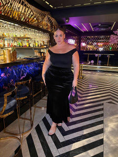 Lieverd, ben je klaar voor de rok die je leven (en je achterkant) zal veranderen? Dit is niet zomaar een lange fluwelen fishtail rok; het is een prachtige, ultra-luxe zwart fluwelen knuffel voor je onderste helft.