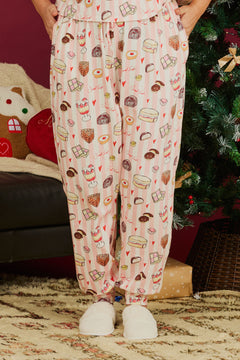 Met onze Sweet Treat PJ Set voelt bedtijd als het beste theekransje ooit. Het is een echte viering van de beste taarten en puddingen van Groot-Brittannië (denk aan Battenberg, Bakewell taart, Victoria biscuit, chocolade Zwitsers broodje, trifle, French fancies en een strooigoed van kleine hartjes) die allemaal over zachtroze en witte snoepstrepen tuimelen.