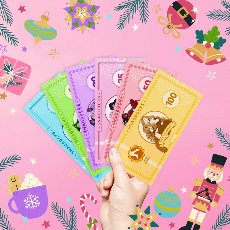 Waarom geef je ze geen Snag Bucks? Een cadeaubon die ze kunnen besteden aan wat ze maar willen van onze website vol met Snag goodies. Met een epische reeks levendige kleuren en mooie patronen hebben we panty's en kleding voor elke maat en stijl. Kies gewoon het bedrag, vul hun e-mailadres in en leun achterover terwijl de gelukkige ontvanger zijn eigen geweldige cadeau kiest!
