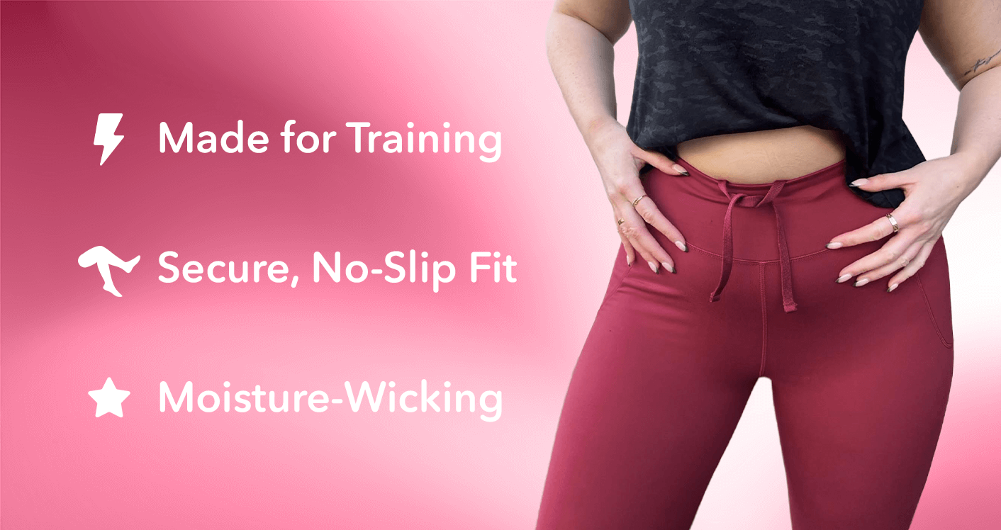 Nope! This is one of the biggest annoyances with leggings, so we made sure to fix it. Our leggings have a wide, comfortable, high-waisted band with brilliant elastic inside. It’s designed to stay exactly where you put it, without digging in or rolling down.