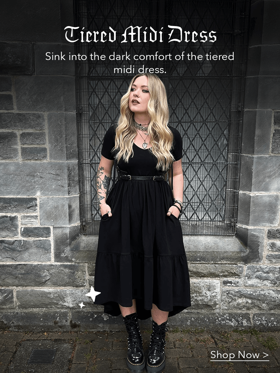 Nasza kolekcja Dark Romantic jest pełna wyrazistych czarnych sukienek, niesamowitych spódnic i wyjątkowych alternatywnych rajstop, zaprojektowanych z myślą o odważnym wyrażaniu siebie. Dzięki zwiewnym tiulowym spódnicom maxi, sukienkom, za które można umrzeć i rajstopom kabaretkom, które idealnie pasują do siebie, znajdziesz tutaj kombinację, która skradnie Twoje serce. Ta kolekcja ożywa dzięki punkowej postawie i dużej parze grubych butów. Gotyckie niezbędniki w każdym rozmiarze, gotowe do stworzenia własnego.