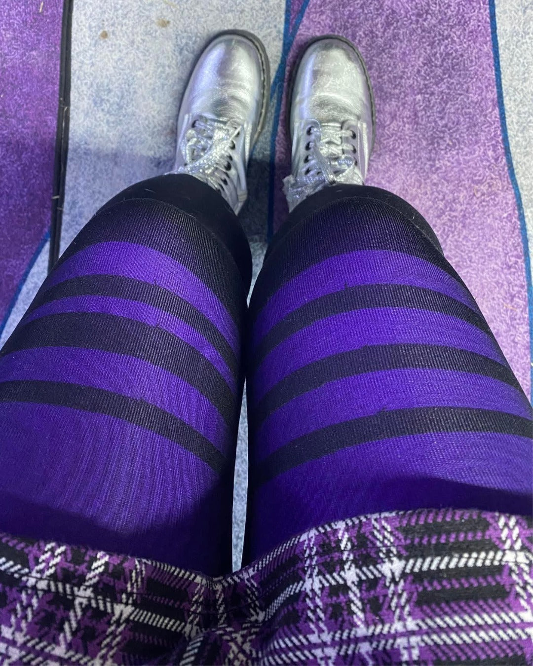 Teraz czas na zabawę. Narzuć na wierzch parę kabaretek lub wzorzyste rajstopy z mieszanym denrem, aby dodać trochę tekstury. Klasyczna czerń lub biel na kolorowej bazie to zawsze wygrana, ale kolorowa siatka w kontrastowym kolorze również wygląda niesamowicie!