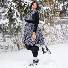 Jest gładka, przytulna i dopasowuje się do ruchów ciała, zamiast się do niego przyklejać, zapewniając idealny moment obrotu, niezależnie od tego, czy wybierasz się na całodniową wycieczkę, czy po prostu kręcisz się dla przyjemności. Kolorystyka Cairn charakteryzuje się głęboką czernią w połączeniu z czystą białą i szarą kratą w paski, nadającą jej ostry, minimalistyczny charakter.