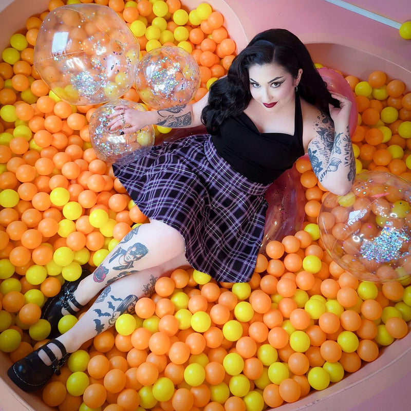 Sukienka Moorland łączy głęboki czarny kolor z fioletowo-białą kratą, dzięki czemu w ciągu kilku sekund można zmienić stylizację z eleganckiej w grungową. Połącz ją z grubymi botkami i czarną siateczkową bluzką, aby uzyskać gotycki efekt, lub z białą koszulą, aby uzyskać swobodny, elegancki styl. Niezależnie od tego, jak ją nosisz, ta spódnica zapewnia dramatyczny efekt.