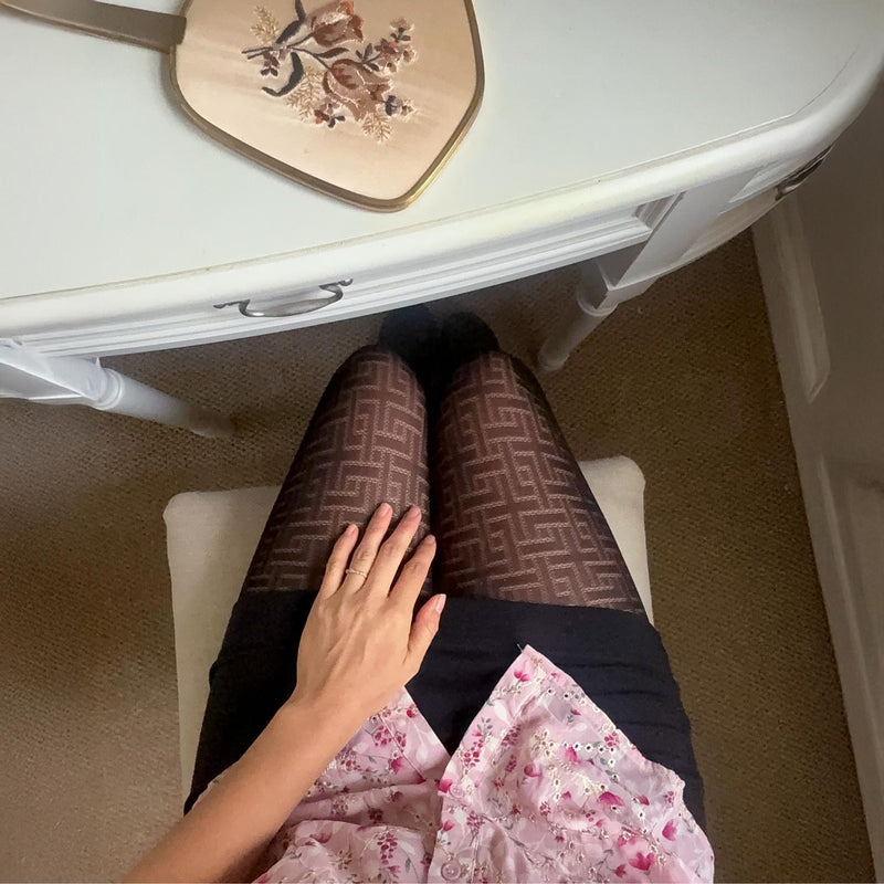 Strukturalna geometria nadaje tym rajstopom wyrafinowany, elegancki wygląd, zachowując jednocześnie klasyczną energię. Odważne, ale zrównoważone, nowatorskie, ale eleganckie, idealnie nadają się do uzupełnienia stroju, nie dominując nad nim. Pomyśl o małej czarnej, dopasowanym kroju lub warstwowym połączeniu z podartymi dżinsami, aby uzyskać stylizację, która wygląda na przemyślaną, a nie chaotyczną.