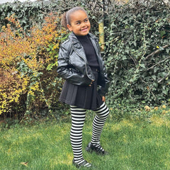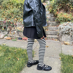 Uwolnij swoją wewnętrzną czarownicę dzięki tym biało-czarnym rajstopom w paski, które są świetnym wykończeniem każdego dnia. Świetne do noszenia przez cały rok, te rajstopy zapewniają ciepło, gdy jest zimno i chłód, gdy jest gorąco, dzięki napowietrzonej przędzy, która jest oddychająca i odprowadza wilgoć. Są wystarczająco wygodne, aby nosić je przez cały dzień.